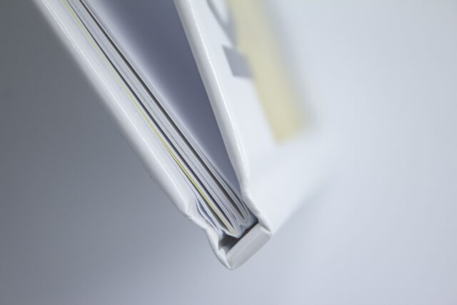 Dit hardcover kinderboek is genaaid gebonden en heeft een rechte rug