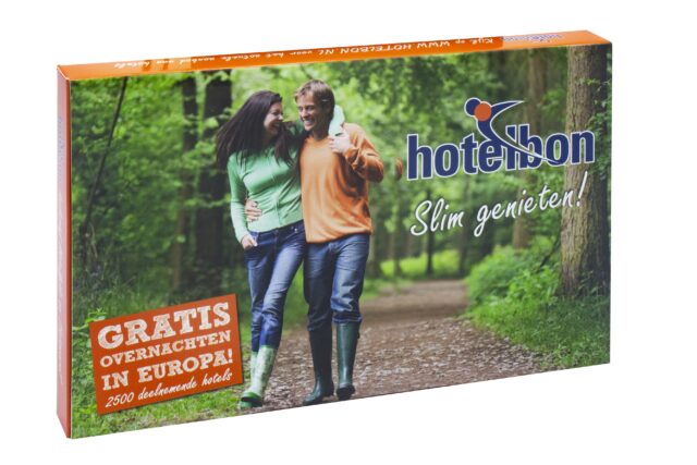Deze bedrukte doos voor Hotelbon is op maat gemaakt inclusief een legpuzzel van 500 stukjes.