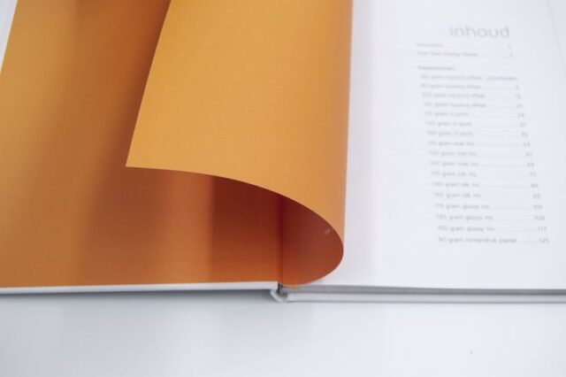 Voor schutbladen is de standaard 140 grams mat wit papier (hvo). Bij boeken met een hoog aantal pagina’s wordt voor extra stevigheid ook weleens 160 grams papier gebruikt. Er is echter veel meer mogelijk dan wit papier. Afhankelijk van jouw wensen kunnen we de schutbladen bijvoorbeeld in full colour bedrukken met een eigen ontwerp die je zelf aanlevert. Een andere optie is dat een van onze vormgevers de bedrukking voor je ontwerpt, conform jouw wensen. Of je kunt een kleur papier uitkiezen uit een van onze papiercollecties. Je merkt het al, veel opties, veel mogelijkheden. Neem vooral contact op voor vrijblijvend advies.