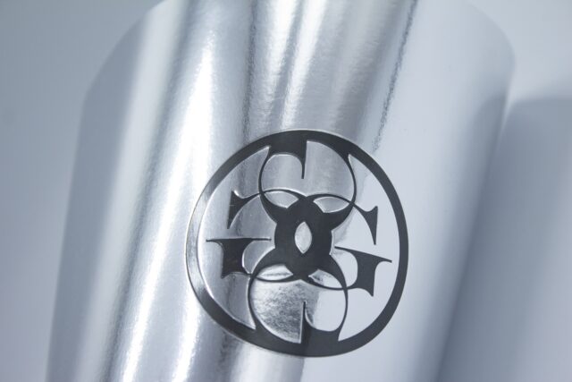 zilver folie laminaat, op achterkant cover een negatieve preeg
